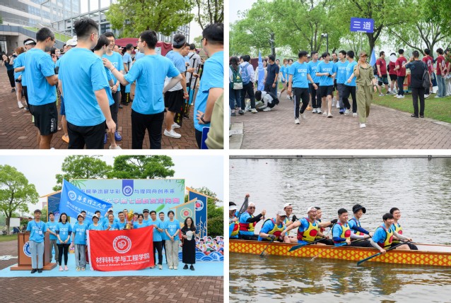 1988-2020级近30名校友加入比赛队伍,带着家属、朋友相聚龙舟盛会,组成了“材子佳人”龙舟队。学院党政办主任顾婷,学院教师朱沙医、王玥、王安琪、佘蕴芮、学生志愿者及校友家属为参赛队伍加油助威。