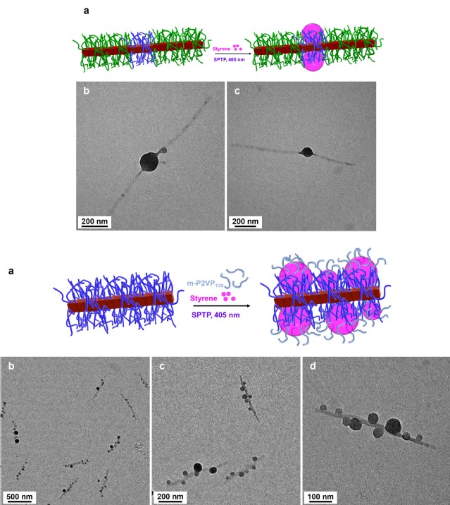 Gerald Guerin教授团队首次提出以结晶驱动自组装(CDSA)所得到的胶束作为骨架,进一步利用聚合诱导自组装(PISA)来实现“棒上长珠”的高维度结构制备。相关成果以“Crystallization-Driven Self-Assembly-Substrated-Polymerization-Induced Self-Assembly (CDSA-s-PISA). Toward the Next Generation of Supercarriers.”发表于Angewandte Chemie International Edition。